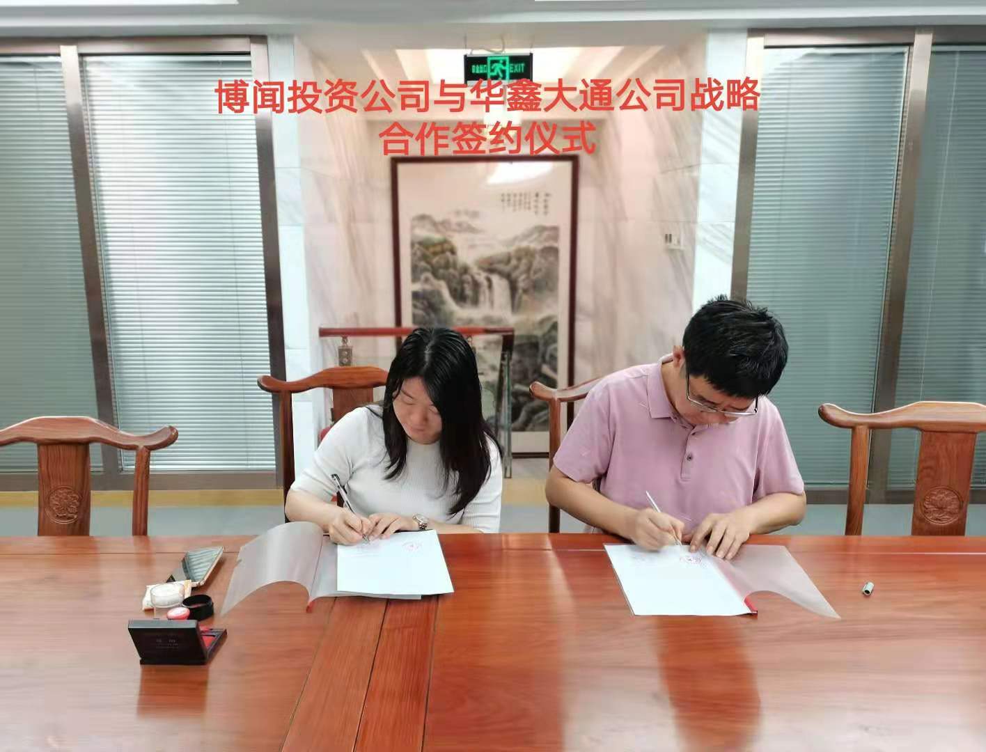 2021年6月6日,博闻投资与华鑫大通战略合作签约仪式在南山区三湘海尚举行。博闻投资总经理张学武与华鑫大通总经理艾娟对此次战略合作进行了深入而真诚的座谈。双方有着共同的发展理念,高度契合的战略思路,未来将携手建立互相支持、互利共赢、共同发展的战略伙伴关系。